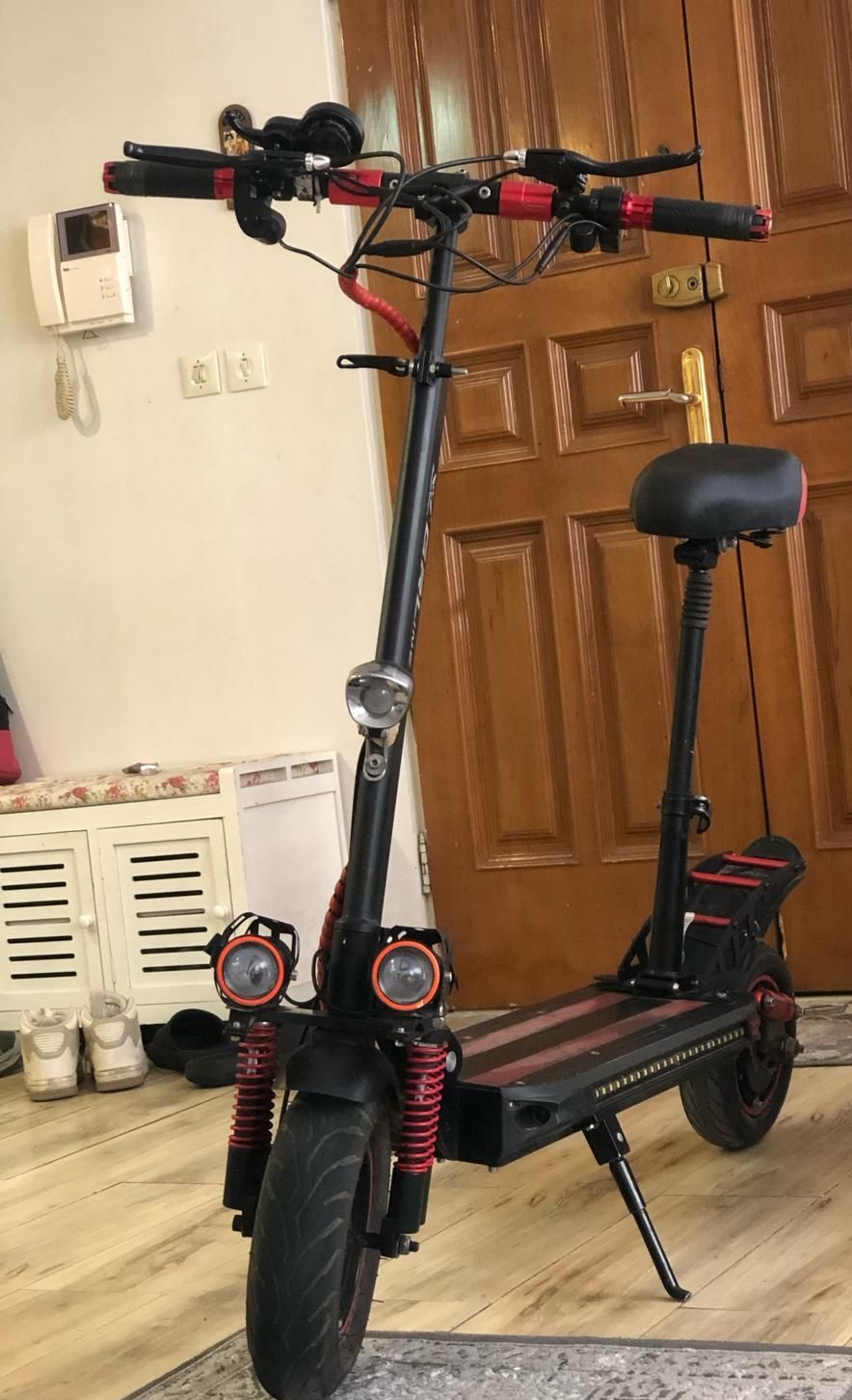 اسکوتر برقی وارداتی از دبی آفرودی لاستیک پهن ۶کمک فنره بوق راهنما سوییچ دزدگیر اسپیکر باند فلش خور باتری لیتیومی بسیار قوی اصلا استحلاک نداره