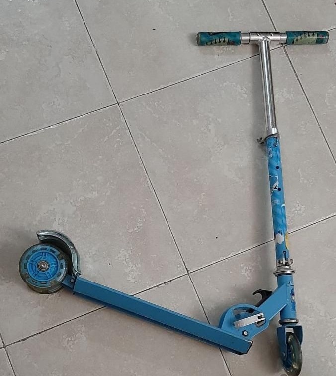 اسکوتر سالم دسته دار با تحمل وزنی 80 کیلوگرم و جنس فلز و خیلی کم استفاده شده است